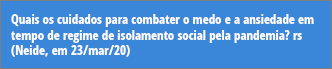 Muita força, saúde, amor, paz, inteligência emocional e energia neste momento. Estamos juntos nessa crise para o que der e vier!