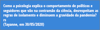 Durante o isolamento social, prudente seria o extrovertido buscasse alternativas ou sensações que permitissem esse contato com o mundo exterior sem sair de casa, por exemplo. Ao introvertido, todo cuidado é necessário para evitar uma adaptação contínua de isolamento. Para ambos os perfis psicológicos, o equilíbrio é fundamental.