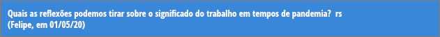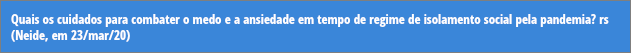 Muita força, saúde, amor, paz, inteligência emocional e energia neste momento. Estamos juntos nessa crise para o que der e vier!